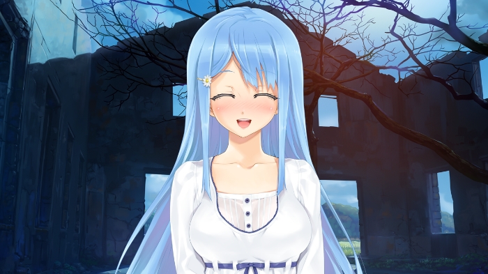 大概是拆包装的时候沾上的吧,雫蔚蓝的长发上挂着一个冰棒外包装的贴纸,而自己并没有发觉,依旧幸福地大吃特吃着。