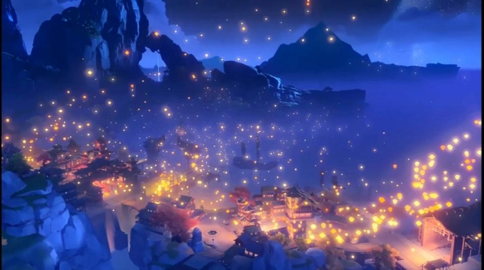 璃月港上空原本璀璨的霄灯骤然间黯淡了下来,不待人们疑虑,一抹霞光突然从海平面升腾而起。
