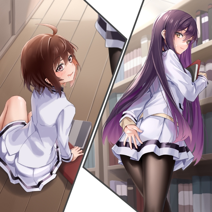 时间临近黄昏时分,学校图书管理的学生基本都走了,只剩下千枝和知心,两人正在将新送来的书分门别类摆放在书架上。