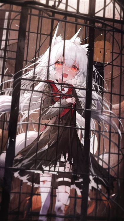 (AI作图,被关在笼子里的白毛狐狸2)