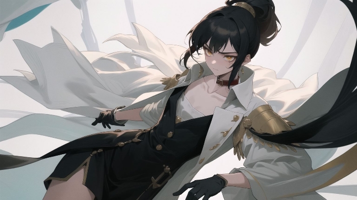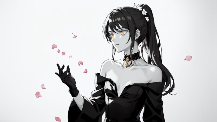 手套不是白的。旁边没有花瓣。而且头发没有上图那种很长很飘逸的感觉(长发控震怒)