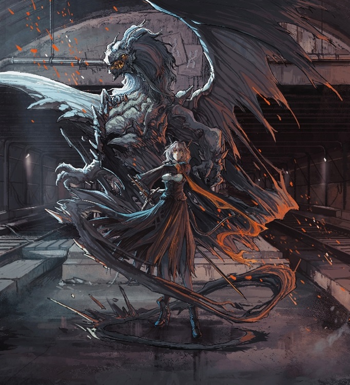 凯尔希引导着Mon3tr。快速飞向塔露拉利用利爪突刺。塔露拉也丝毫不怠慢。提剑格挡之势接力向后移动。随后纵身一跃一剑将M3钉入地面。