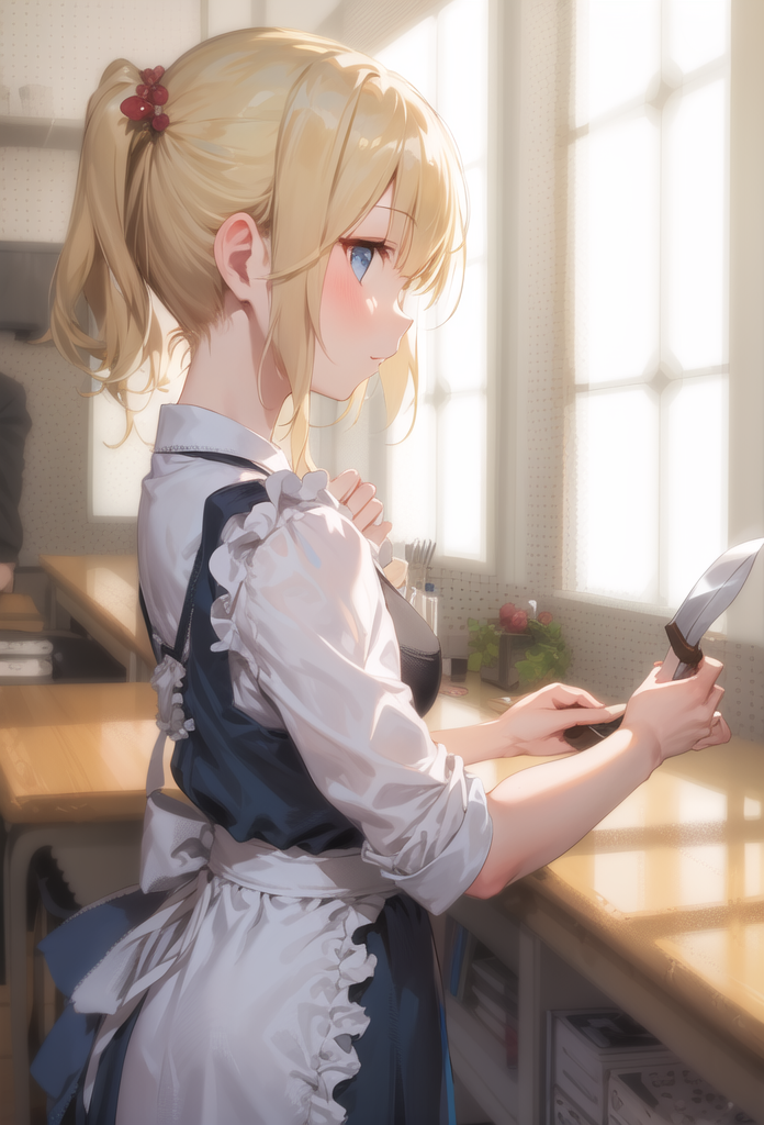 星若穿着围裙的样子也一样很可爱,而且更加给人一种贤惠的感觉,现在也把头发绑成马尾,正在用菜刀切着白菜和胡萝卜,即使我是完全的外行也能看出来刀法相当高超。