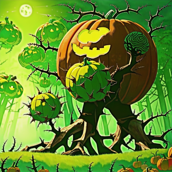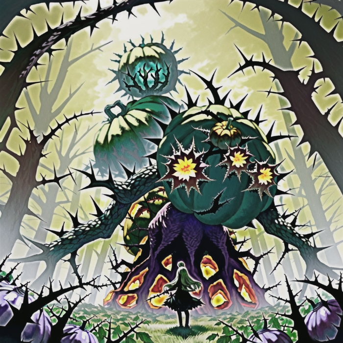 随后浮绘便停下了脚步看着前方那比周围大树都高的巨大南瓜与那环绕的荆棘。