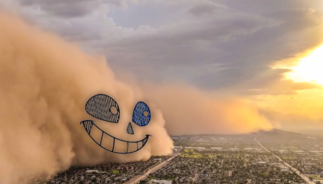 衫斯就这样在众人的注视下,变得越来越大,直到遮蔽了整个天空。漫天都是滚滚黄沙,能见度直接降到最低点。