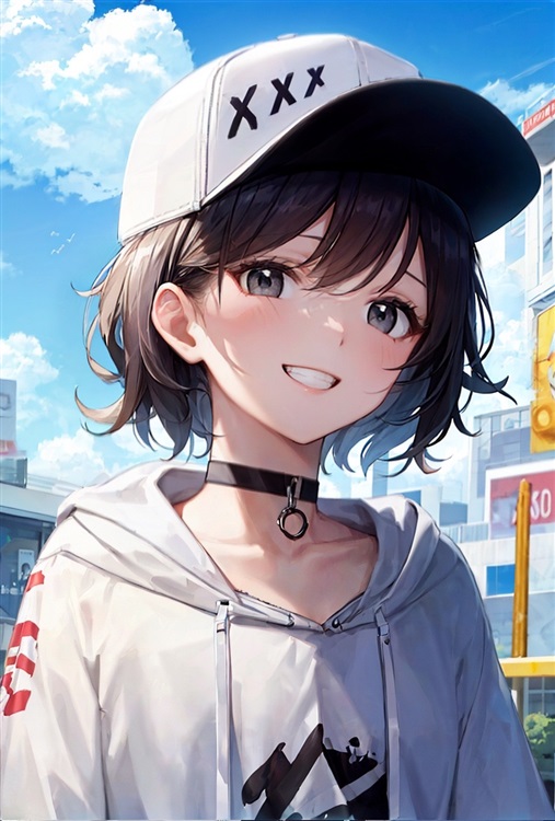 坐在另一边座位上,一个头戴白色棒球帽的短发女孩半依靠在椅背上,脸上带着轻蔑的笑容,俨然一副王者般的姿态。
