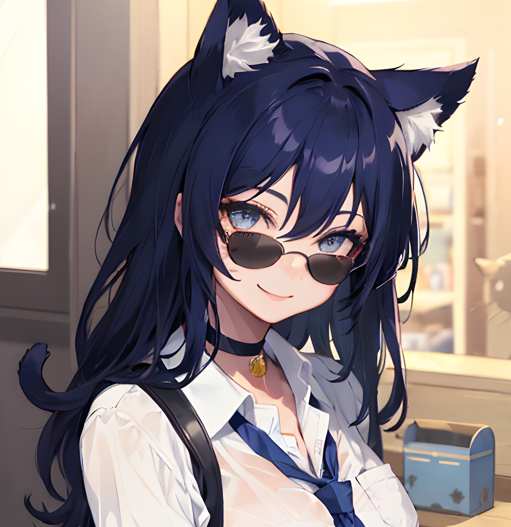 而在铃铛下的,则是一个深蓝色头发带着墨镜的少女,少女甚至没有提着猫包,而是抱着猫,有些急切的说道:
