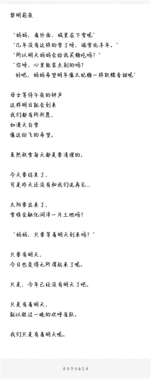 “睡一觉起来一切都会好起来的哦,我会带着被子来的哦。反正你不愿意回去吧。”