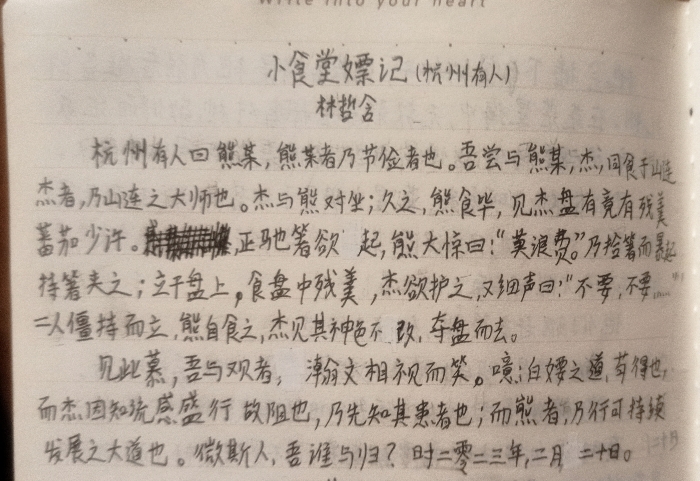 ①(标题):林哲含所箸的小食堂(嫖)记的最后一篇,