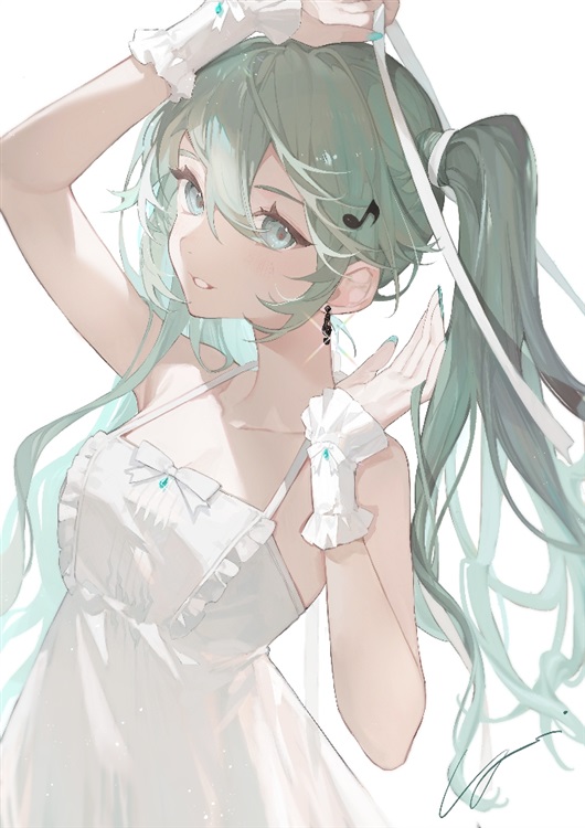 月光下,翠绿色双马尾的少女向着新的世界问候。