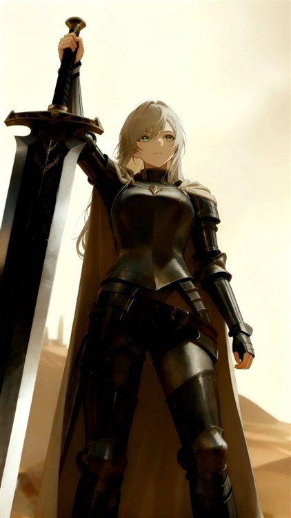 接近两米的身高,覆盖全身、闪烁着冷冽金属光泽的厚重板甲,以及那柄竖立起来后长度已经超过两米、只看一眼就能感受到其恐怖分量的巨剑……