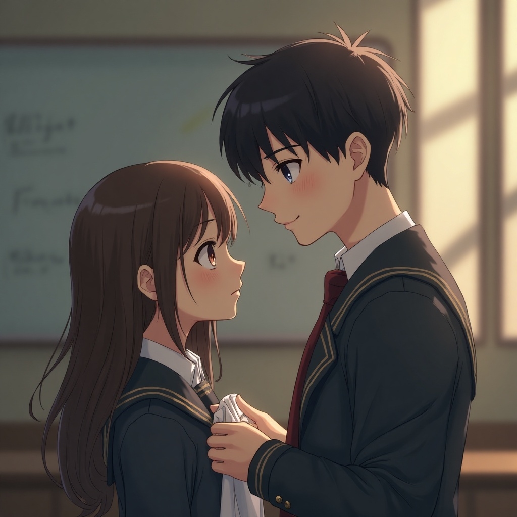 门口写有高三(5)班、黑板上浮现“高考已结束2天”字样的教室里,身着夏季校服裙装的长发女孩正用男孩递来的手帕仔细的擦拭自己双腿间的片片殷红…