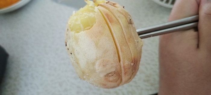 这样一通想完,但是终究没能想到一件事情,这一次烤土豆失败的点在哪里,本来这件事情没想通,看着这没吃完的土豆更头疼了,毕竟是自己做出来的还得处理一下,至少把熟了的那一部分吃掉才行,那一部分味道也还可以至少能吃得下,还有种熟悉的感觉。