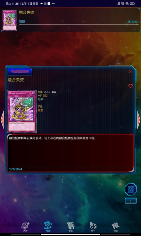 ''我发动陷阱卡''融合失败'',融合怪兽特殊召唤时才能发动,场上存在的融合怪兽全部回到额外卡组。当然,因为''王宫的通告''的效果,''融合失败''的效果是无效的。''
