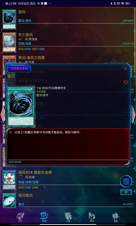 那正是她所期待的卡,魔法卡''旋风''。