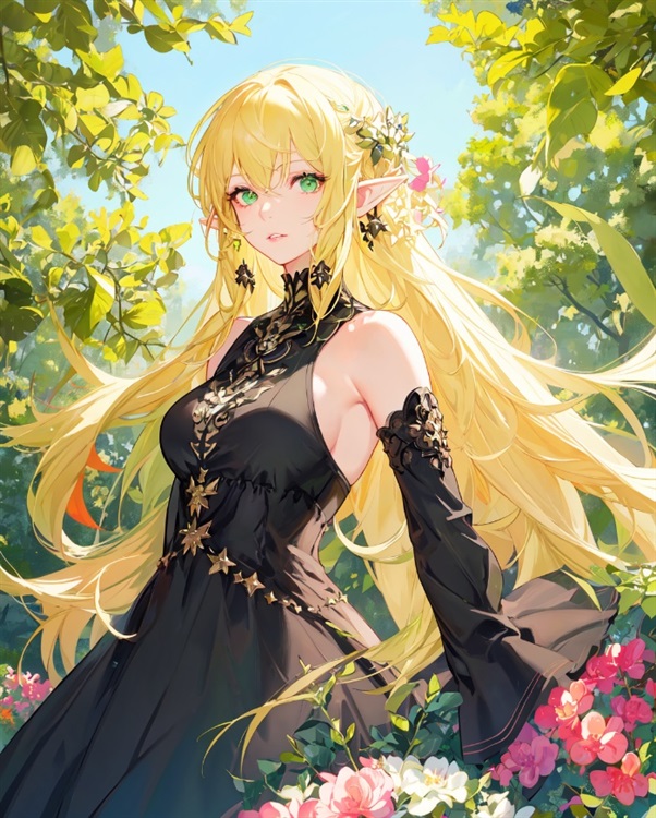 她的胸脯适中,似乎正好能够盈握,那独有的尖耳朵,金色的秀发,绿色的瞳孔。