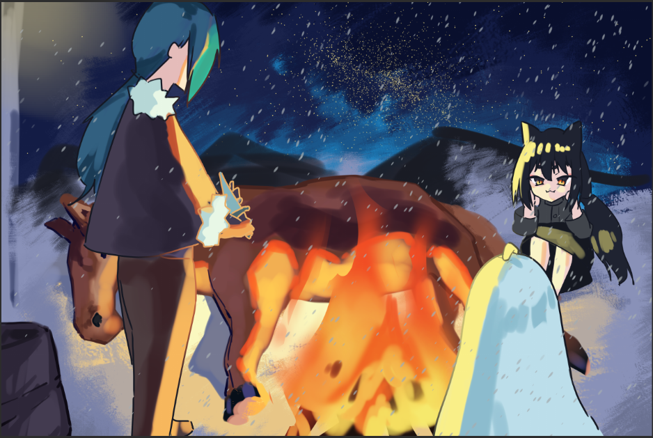波亚架起篝火,原来那支车队负责拉车的两只驮马都死了,秉承着不浪费的原则,他费力拖过来其中一只,开始思考晚上要怎么料理了。