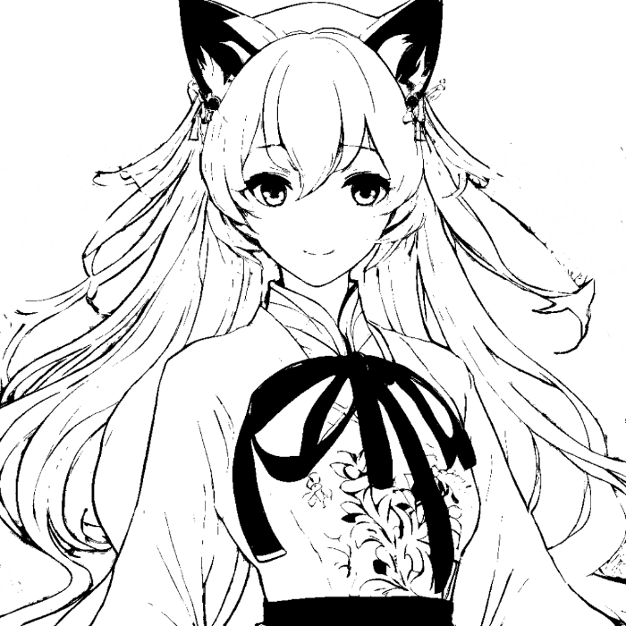走到了那个传来声音的牢房那里,两人看见了一个穿着白色和服、长着兽耳的女生。