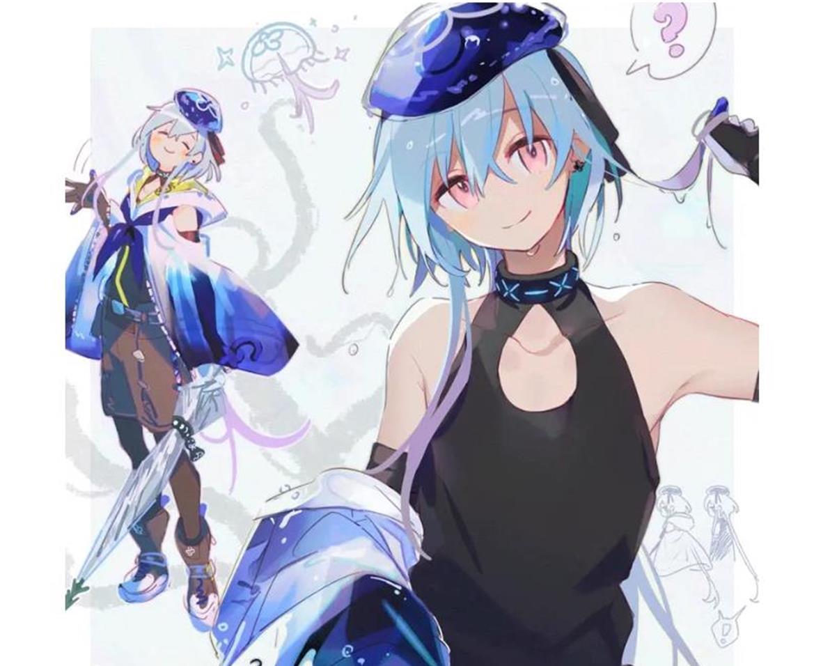露出了肩头,领口又仿佛项圈似得黑色背心。