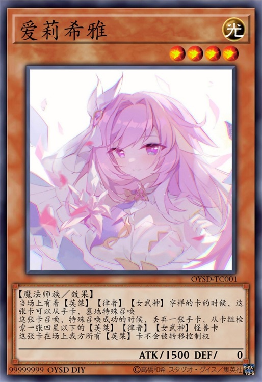 爱莉?!等下这张卡游戏王?我去,我该不会穿越到什么游戏王的世界了吧?呀咩楼,虽然我不看,但是听他们说除了第六部以外都很危险啊,第一部有邪神佐客,第二部有darkness第三部有地缚神这种东西,虽然听他们说第三部最后大boss是zone,但好像是未来的救世主来着……第四部有上千主上这个不清楚,第五部有扎克,这个我倒是懂,一直听他们说什么霸王龙之魂,霸王天龙之魂的,听说最近还得到了强化,什么同调宇宙,虽然我不玩,但是天天有人给我说,我好像也会一点了,苏洛笙想到,不过除了爱莉以外还有原本的卡组诶,所以爱莉算是我的专属魂卡吗?好像还有一个邀请函?等下等下,要迟到了!