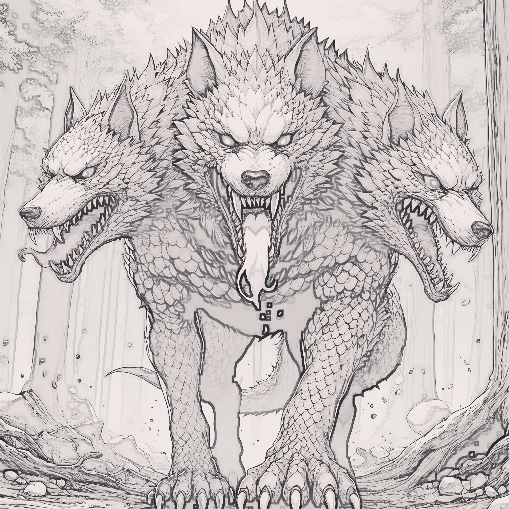 正如其名,这只魔兽有着三个恐怖外貌的头颅,每个头颅都张着血盆大口,露出了锋利的獠牙。强壮而庞大的身躯有着漆黑如煤的体毛,有些部位还覆盖着坚硬如铁的鳞甲,闪烁着血红色的光芒。