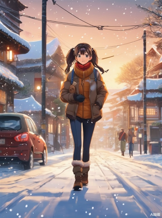 天空飘落着雪花,一个棕色双马尾的少女正走在路上,她穿着棉袄棉裤,在雪中慢慢地走着,仔细一看手里握着一张纸,这是什么了?这是医院的病危通知书。