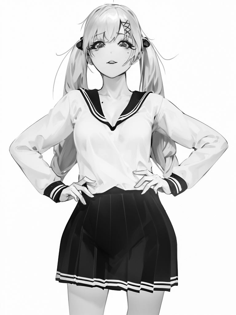 她的背后还站着一个双马尾少女——少女的身材与李拉赫一样“贫穷”,但是还好有一张精致的脸蛋,就像刚刚剥好的鸡蛋一样光滑细腻,还透着粉色。