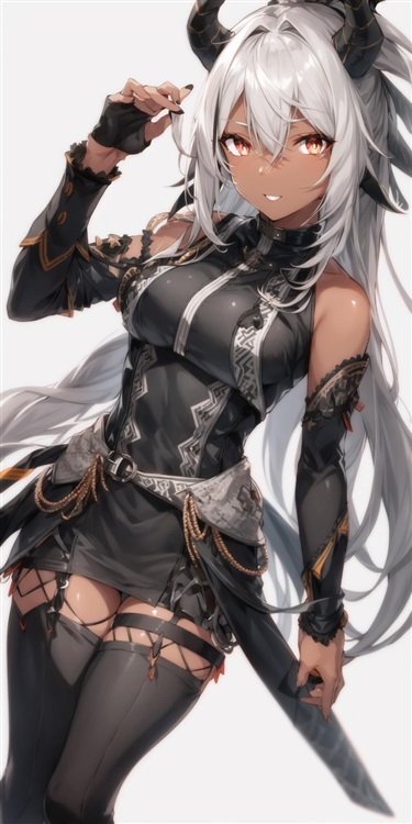 被拉拢回思绪了的婧姬刚转过身准备说点什么就被对方近在咫尺的身形给吓得后退了几步,稳下心神后婧姬便趁着这个女人看信的时间,好好的打量了她一番:棕色的皮肤,灰黑的兽瞳,灰白色头发,一对尖尖的兽角,穿的也挺飒爽。