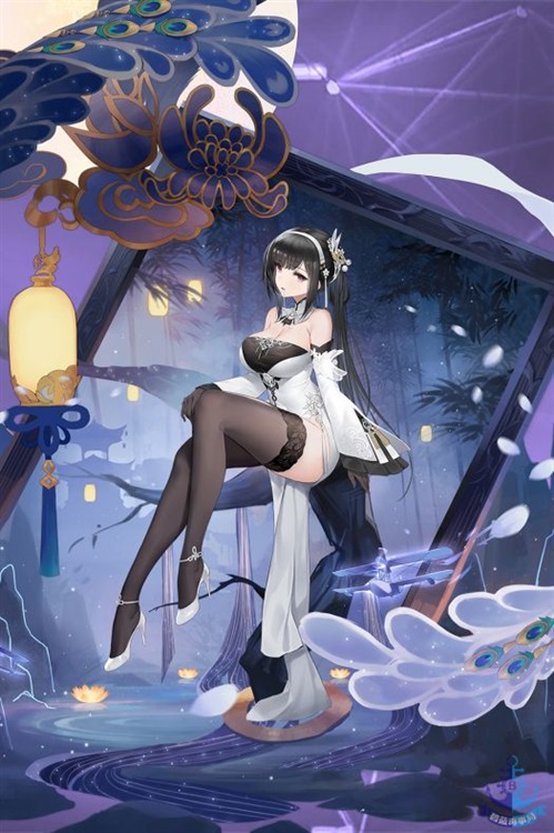 白色旗袍用银质的花纹点缀,桌下还能瞥见一双被黑色丝袜包裹的颀长美腿。