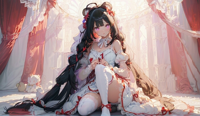 特征:几乎触地的黑色长发,大大的淡紫色眼睛,皮肤非常白,总是穿着一身黑色连衣裙,头上戴着个红色的小蝴蝶结。我们收集了她每一次出现的信息,她似乎从不穿鞋子。--‘百晓生’环玉
