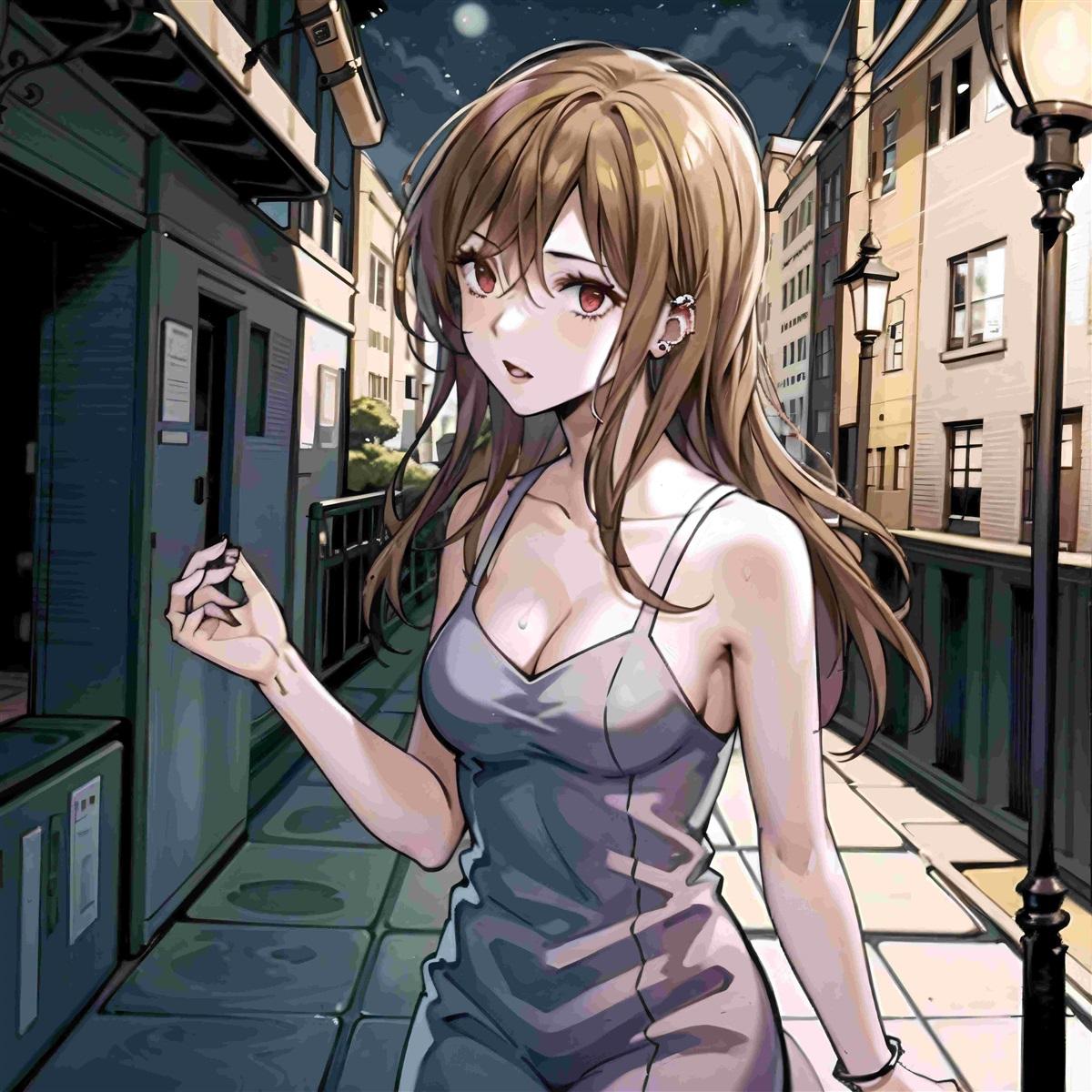 艾薇尔微微松了一口气,跟在wz身后走着。在晚上的街道两旁的店铺琳琅满目,五彩缤纷的招牌和橱窗里的商品让人目不暇接。她的目光不由得被一家卖手工饰品的小店吸引住了,橱窗里展示的精致手链和耳环闪烁着温暖的光芒。