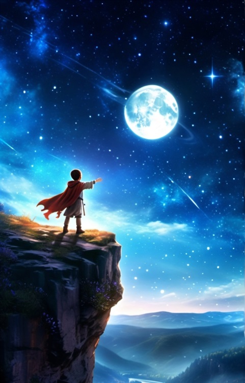 爷爷将我眼上的布扯了下来,我睁开了眼睛,映入眼帘的是一片广阔的天地,一望无际的草原在夜色的映衬下显得幽静又神秘,蜿蜒的溪流向着远方流去,脚下的瀑布反射着月亮的光辉,身后的林子里时不时发出沙沙的响声,天上的无数星辰如璀璨的宝石镶嵌在无边无际的黑夜中。