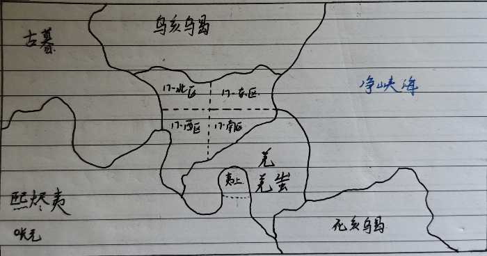 熙烬170年,古暮、乌亥乌曷、羌、羌蚩、化亥乌曷、熙烬夷六族五国规定崤山以南至喀江以北、天落涧以东至净峡海一带为17区,各族平等自由相处;并划分17区为东南西北四小区。