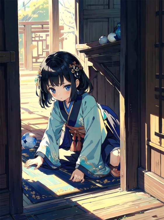 很快,一位扎着小辫子的小女孩急急忙忙地冲了进来,一个没注意,就被门槛绊倒在地。