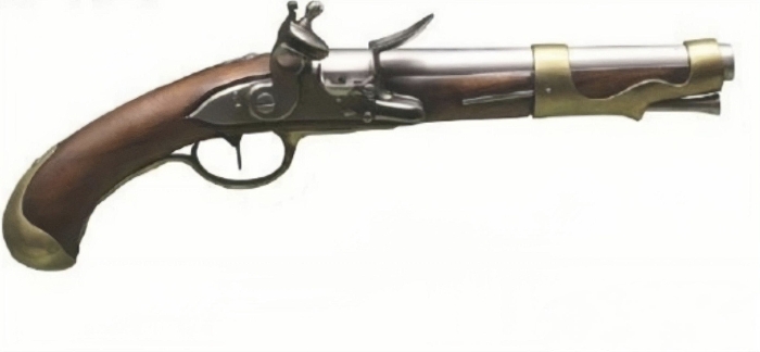 枪?看它露出的部分,有击锤,扳机和保险等装置,似乎是燧发式手枪。