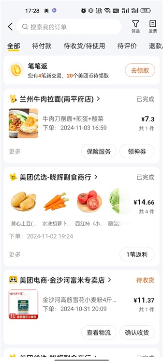 “我今天的晚餐——在‘新手拼单’后,只要七块钱的牛肉刀削面。”