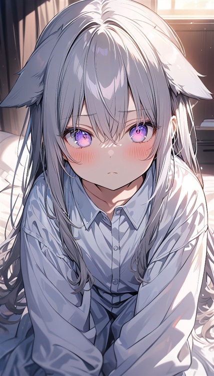 浴室突然走出一位长银白发蓝眼睛的少女,不过因为刚洗好澡,什么都没穿,但是拿着毛巾擦好身后就直接坐到沙发小灰旁边。