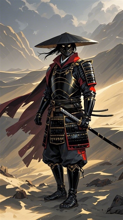 一个男人从车上下来,腰间挎着一把银色刀镡、深红刀鞘的量子武士刀——影血。男子身穿一袭深黑色的武士服,外袍是一件深红色的绘有家族纹章的和服,下身着一条如同鲜血一般红色的袴,脚踏一双黑色草鞋,草鞋的红色带子紧紧地绑在脚踝上,头戴一顶黑色的斗笠,面罩捂得严严实实,那眼神中的寒光让人不寒而栗。