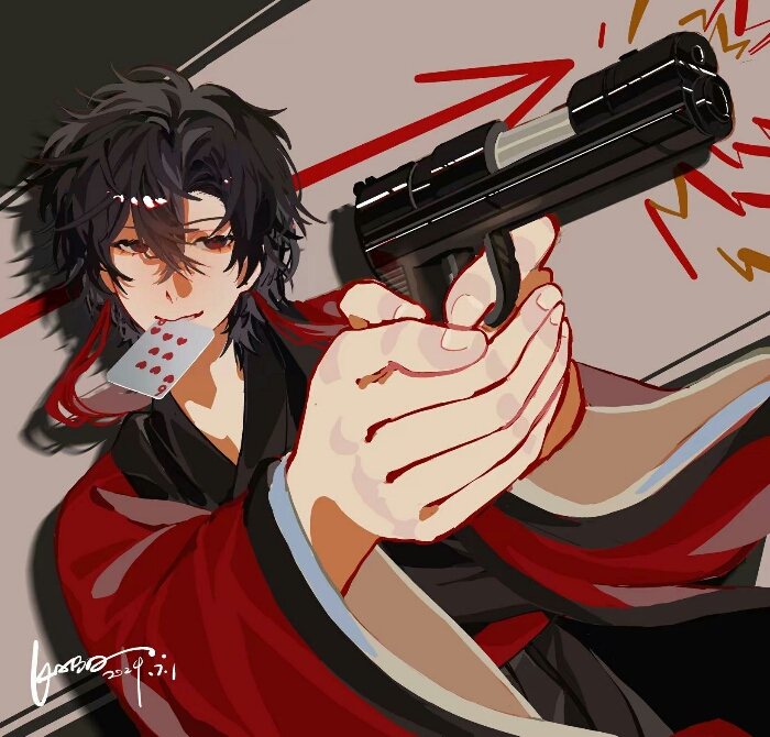 天空下着濛濛大雨,一個身穿西裝的人?在他的右側的胸口,戴着白色的蓮花,靜靜站在亂墳崗中,手拿着一把傘,撐在自己的上方。雨滴不停的往下落,滴在雨傘上,都是格擋的防盾?而少年另一隻手,去拿着一個白玫瑰,又拿着……其他不同的花,輕輕的放在地上。