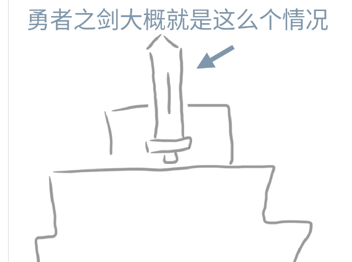 一般来说,勇者之剑通常都是剑身插入石头之中,但眼前的这把剑却恰恰相反——它竟然是剑身朝上、剑柄朝下倒插在地上的。