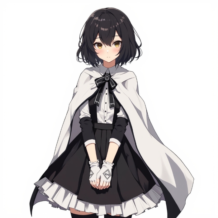 我仔细的打量着她如今的样子,黑色的短发刚好与黑白配色的服装相称,白色的披肩遮盖了半身,显得神秘而安静,而披肩下的衣裙又给她添加了几分精贵。
