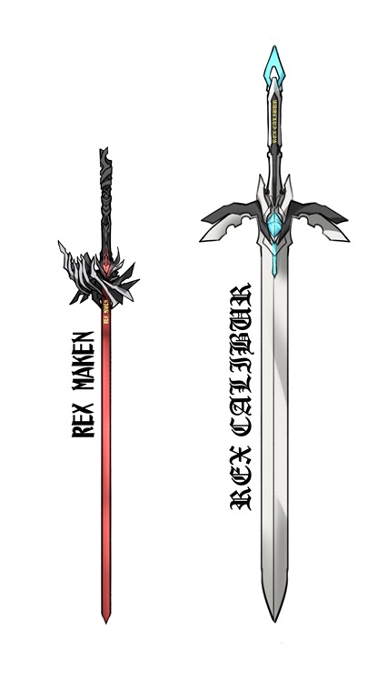 武器图:残虐魔龙之剑 & 天龙真理之剑(REX MAKEN & REX CALIBUR)