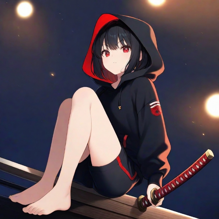 少年不知如何从卫衣中抽出一把黑红色的大太刀,太刀的长度几乎与少年等高。这刀究竟是如何从衣服里取出的?又是怎样藏于其中的?