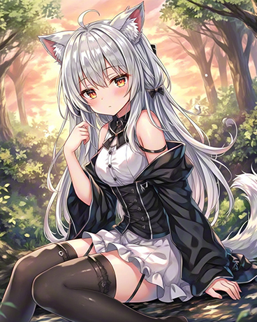 那是一只人形魔物,外表看起来和人类少女差不多,但头上长着一对毛茸茸的猫耳,身后还有一条细长的尾巴。