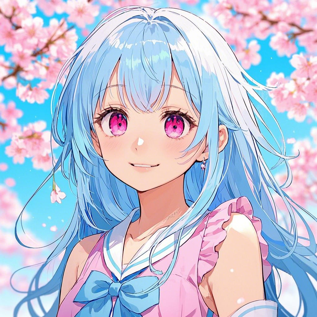 外貌:浅蓝色长发,粉色眼眸,身高差不多有一米六八。