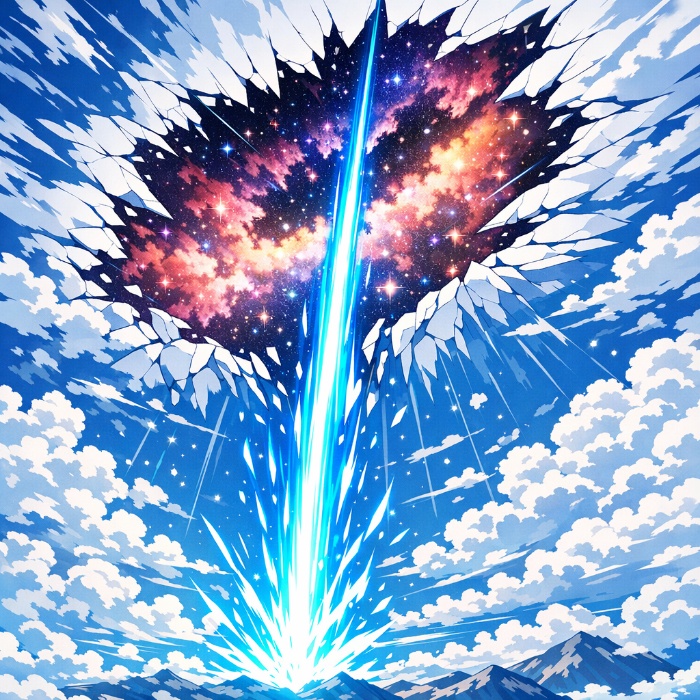 “砰!”凌萧一剑劈开了一道裂缝,裂缝散发着幽紫色的光,透过裂缝可以看到另一个宇宙的景象。