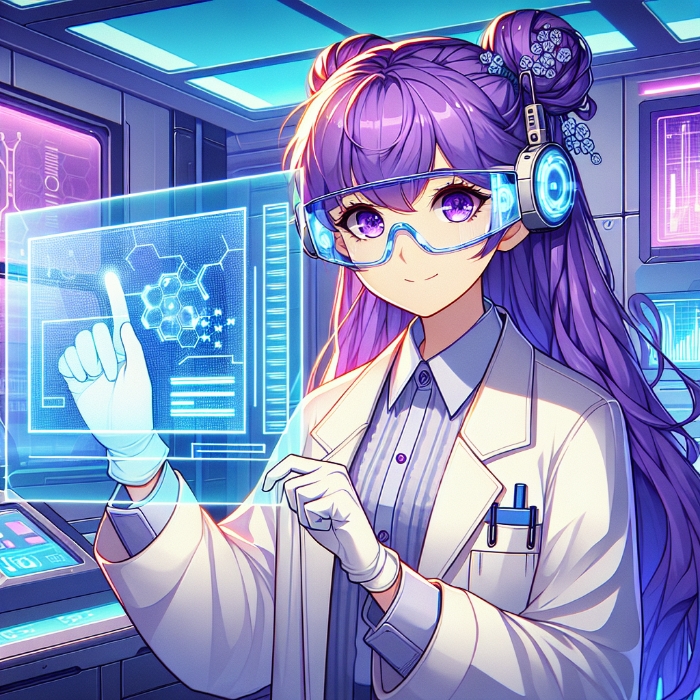 透过玻璃能够看到实验室的内部各种机械运作着,充满了未来的科幻风格,而一名紫发的研究员则目不转睛地盯着显示屏上的数据。