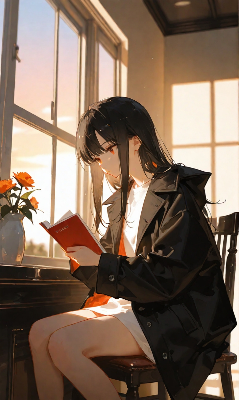 秋山学姐坐在对面,倒完茶后便没再开口,手里拿着一本从储书室“借”来的书,淡金色的发梢垂在书页旁,像一抹秋阳的余晖。她翻书的动作随意优雅,指尖在纸面上划过,偶尔停下来,却是久久不再向前,又变回了那副只敢远观的油画。