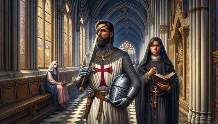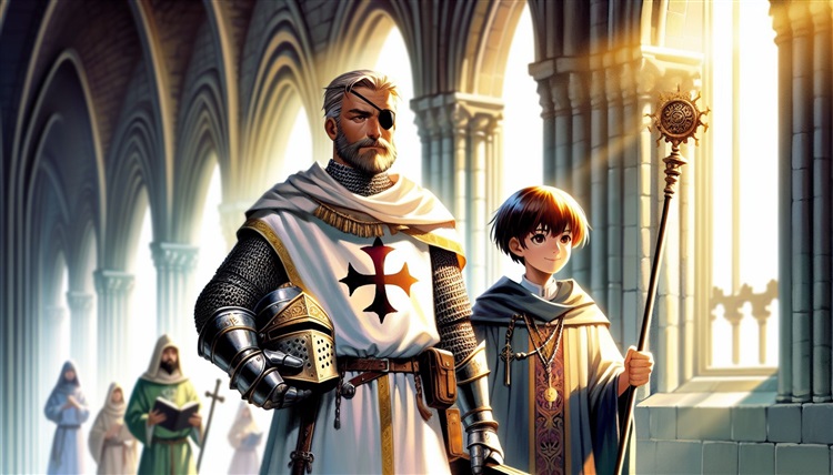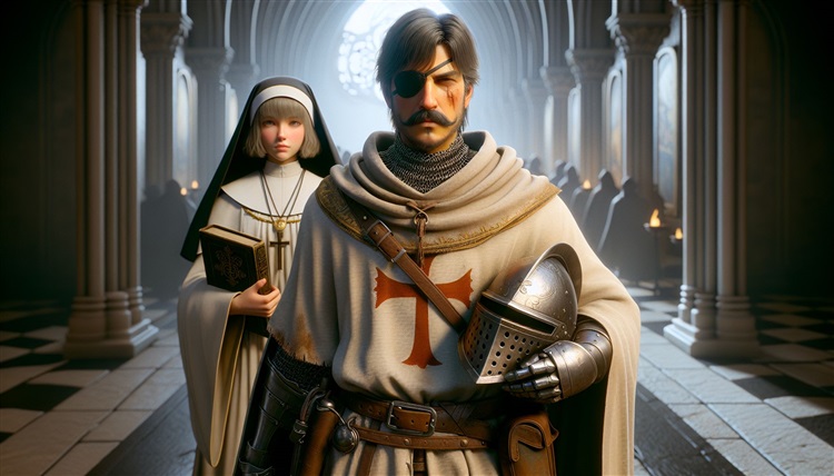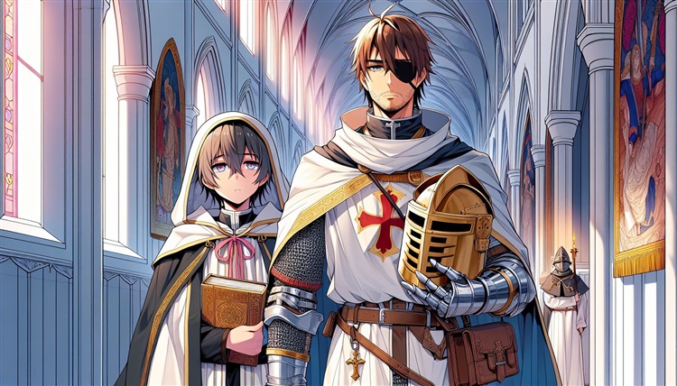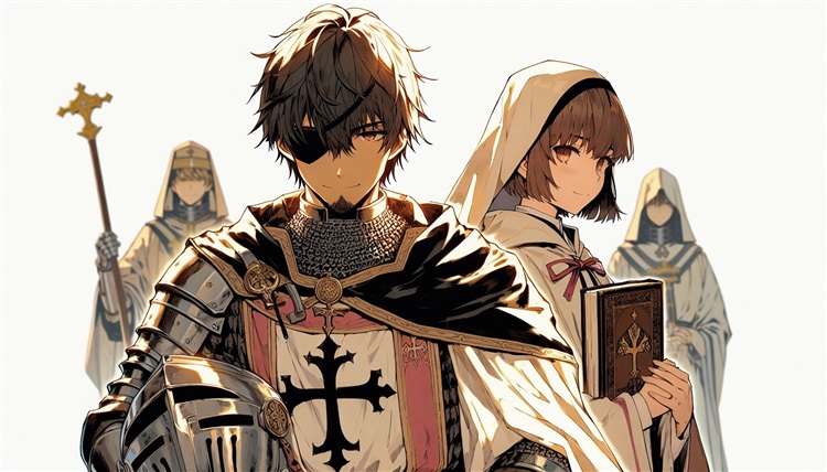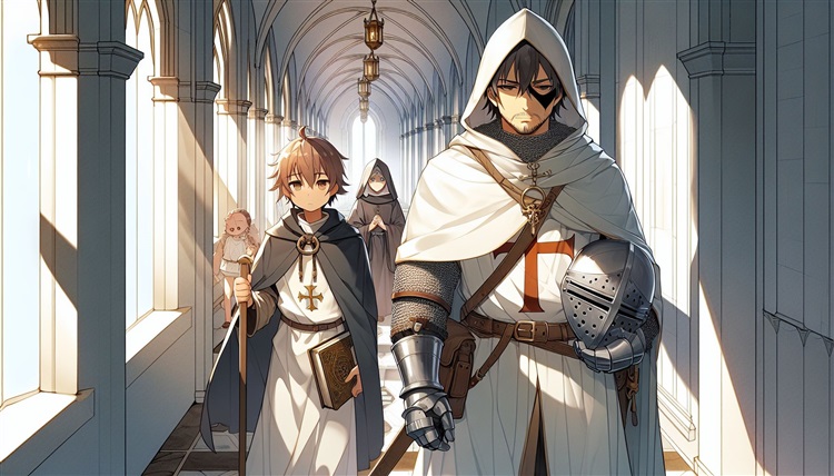 這張圖是我目前相當滿意的一張,氛圍與人物都畫得不錯,有些美中不足的是,手上的頭盔有點先進了,這種頭盔是14世紀才有的構型,我是聖殿騎士,在11世紀還沒有這種構型的頭盔