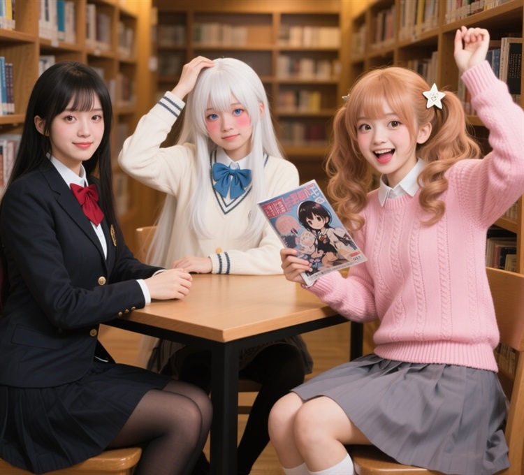 “晚晴,身体怎么样?” 顾清月起身,顺手将窗边的椅子拉过来。慕晚晴坐下时,裙摆轻轻扬起,露出一截纤细的小腿:“最近状态好多啦!本来想找清月姐商量文化节的事,看你每天忙得像个旋转的陀螺,都不敢打扰呢。” 她忽然眼睛一亮,转向王语弦,“对了!上次在图书馆聊的动漫,你后来有继续看吗?”